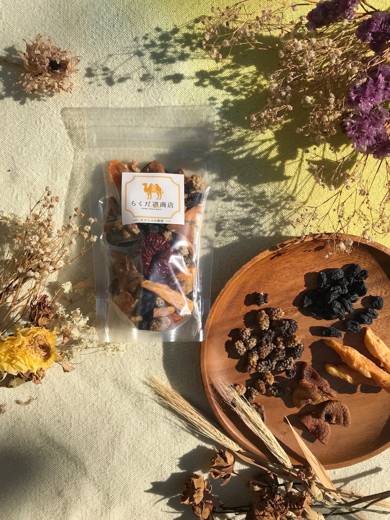 世界中から集めたドライフルーツとナッツを、ひと袋にぎゅっと詰め込みました。